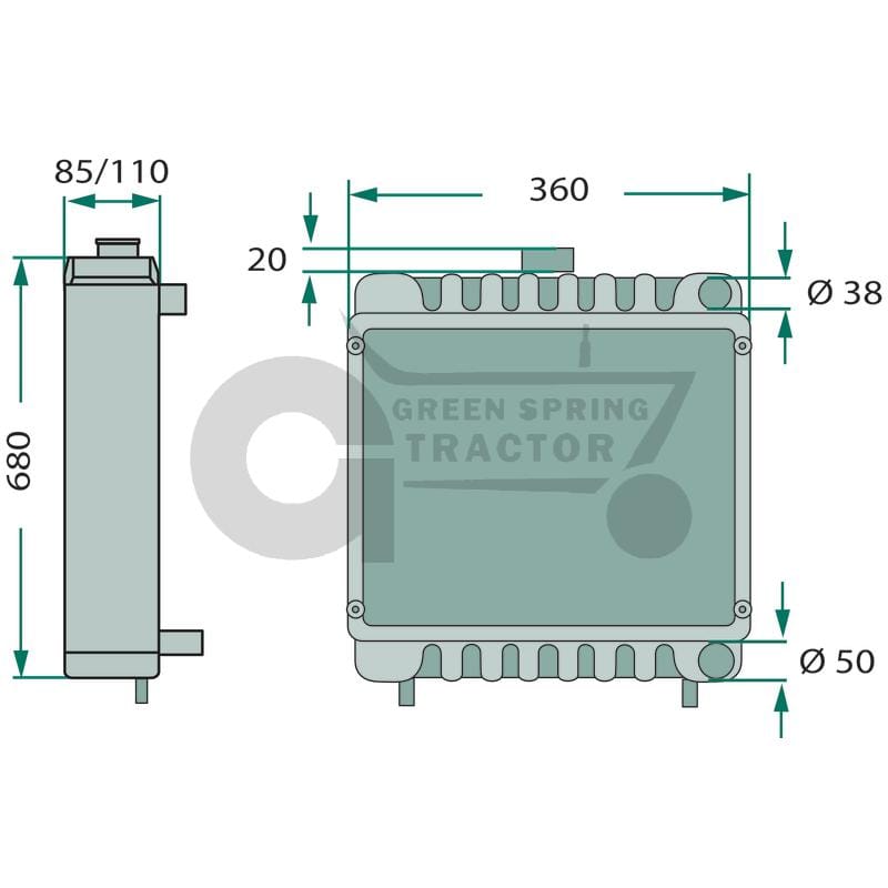 Radiator compatible with John Deere models 1030, 1630, 1830, 2020, 2030, 2120, 2130. Replaces part numbers: AL25255, AT20847. Ensure your equipment runs smoothly with this radiator.