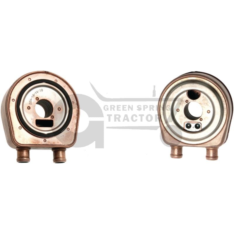 Oil cooler compatible with John Deere models 1040, 1140, 1750, 1850, 1950, 2250, 2450, 3050, 3100, 3200, 3300, 3350, 5300, 5310, 5400, 5410, 5500, 5510. Replaces part numbers: RE38077, RE61767. Ensure your equipment runs smoothly with this oil cooler.