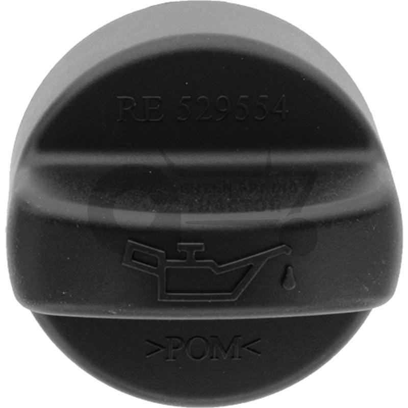 Oil filler cap compatible with John Deere models 5080G, 5080GF, 5080GV, 5090G, 5090GF, 5090GH, 5090GV, 5100GF, 5100GV, 6090MC, 6100MC, 6130, 6225, 6230, 6230PR, 6325, 6330, 6330PR, 6425, 6430, 6430PR, 6525, 6530, 6530PR, 6534PR, 6630, 6630PR, 6830, 6830PR, 6930, 6930PR, 7430PR, 7530PR. Replaces part numbers: RE529554. Ensure your equipment runs smoothly with this oil filler cap.