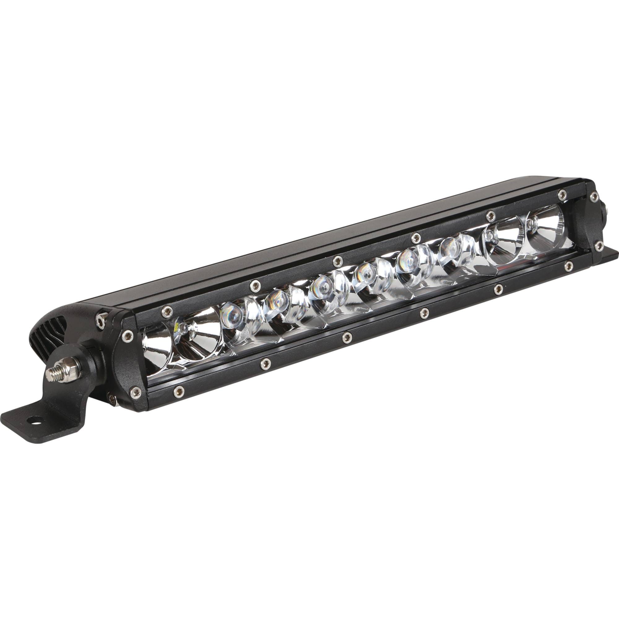 Tigerlights LED 10″ Single Row Light Bar produces 6700 lumens with a power draw of 50.0 watts and 4.2 amps Designed for 12-24V systems. Beam pattern: Spot/Flood. Includes: Stainless steel hardware and mounting bracket