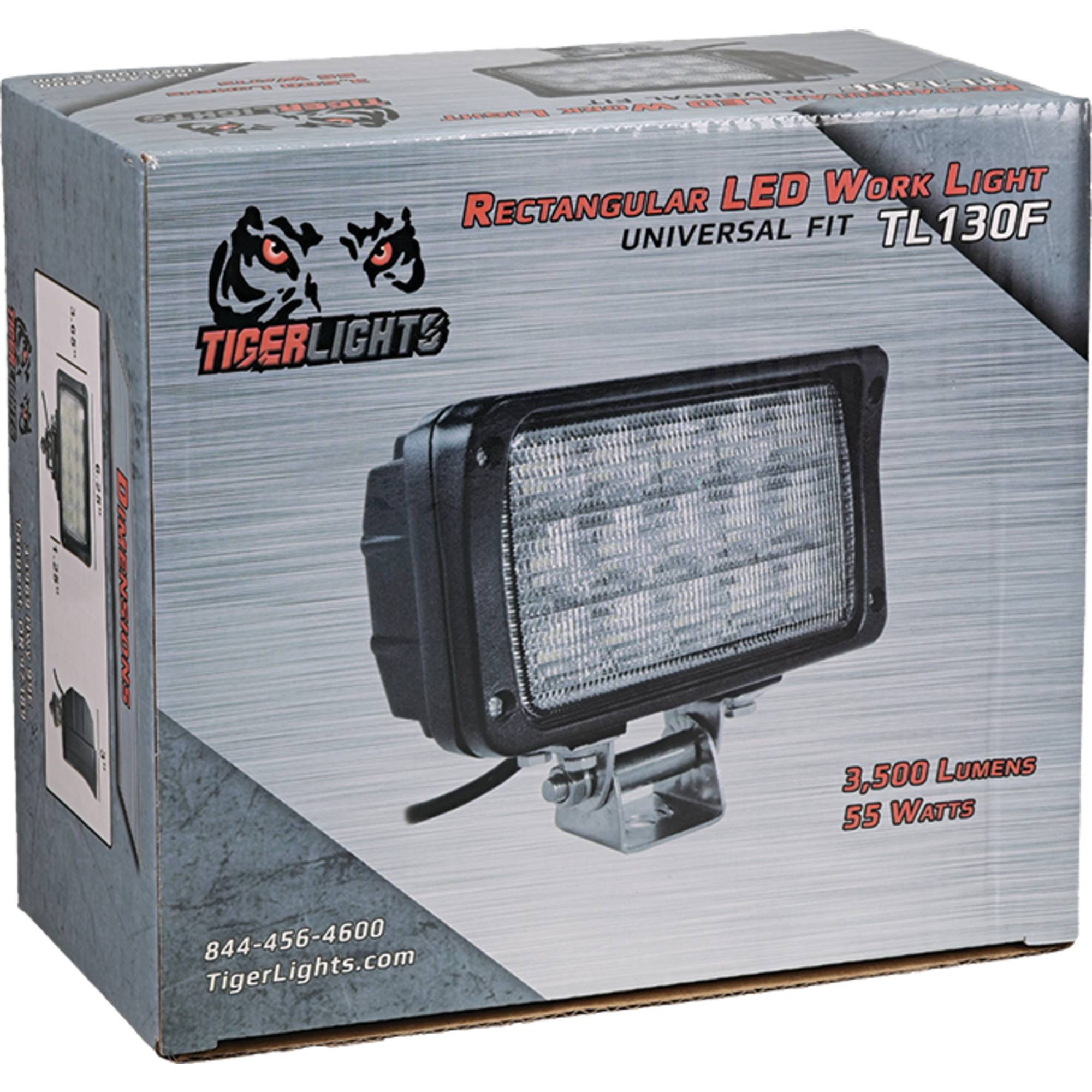 Tigerlights LED Rectangular Flood Light produces 3500 lumens with a power draw of 55.0 watts and 4.5 amps Designed for 12-24V systems. Beam pattern: Flood. Includes: Stainless steel hardware and mounting bracket