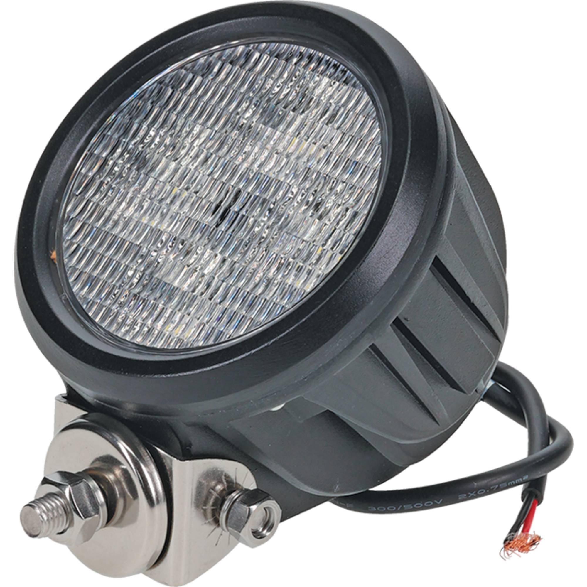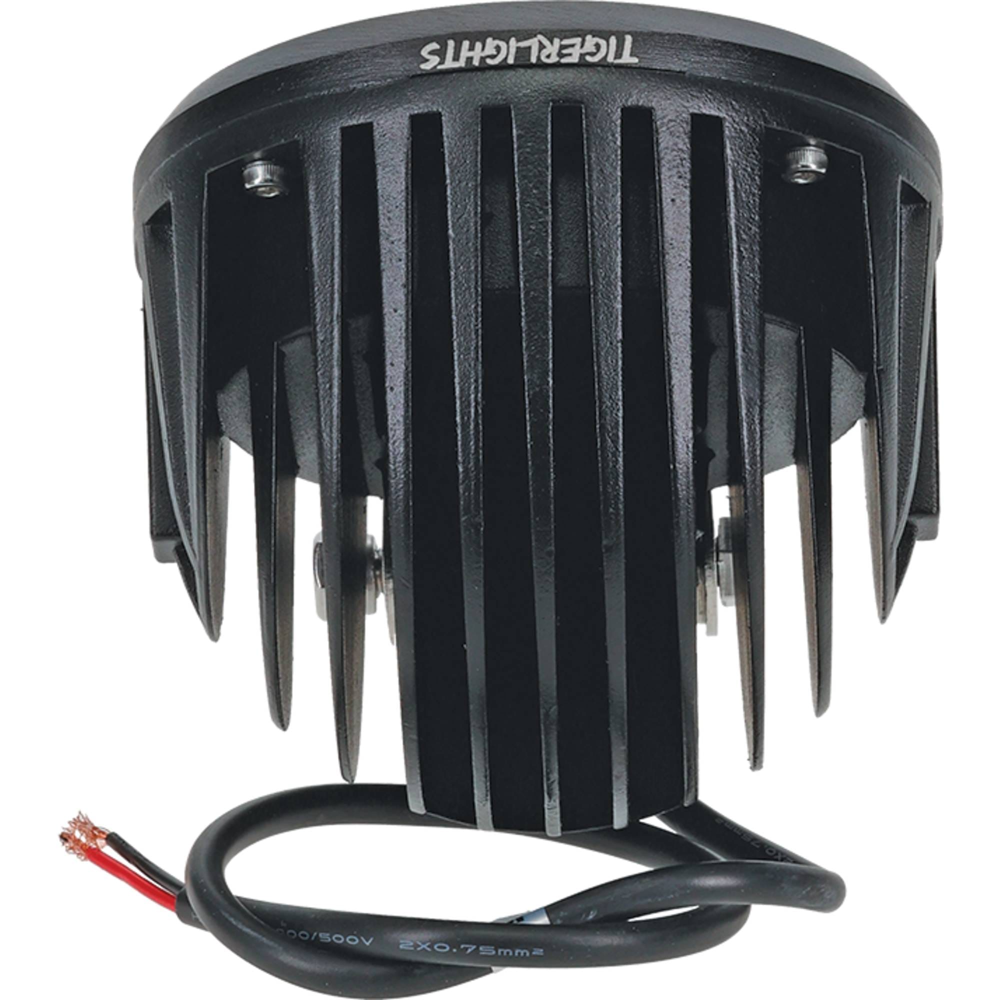 Tigerlights LED Round Flood Beam produces 3200 lumens with a power draw of 40.0 watts and 3.3 amps Designed for 12-24V systems. Beam pattern: Flood. Includes: Stainless steel hardware and mounting bracket