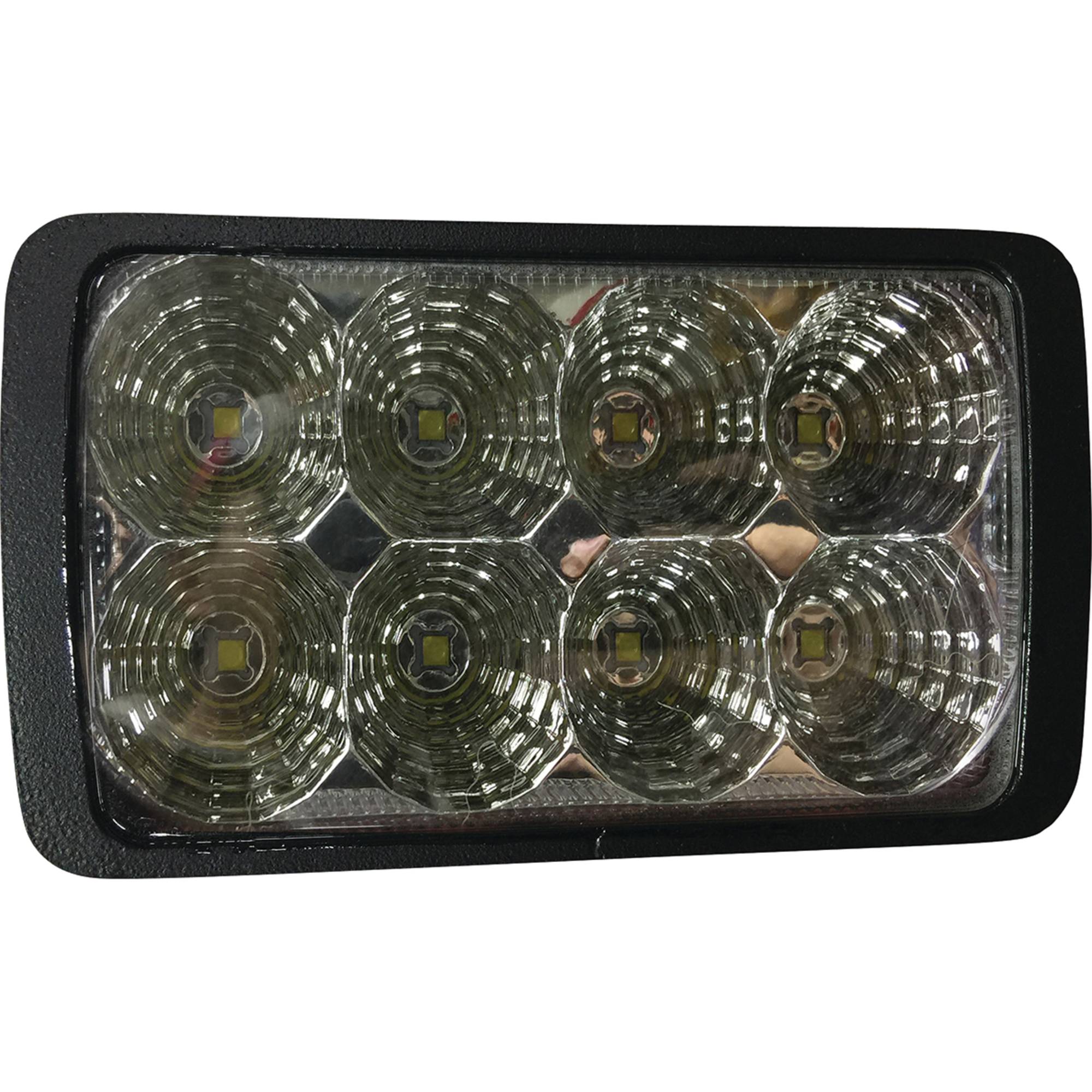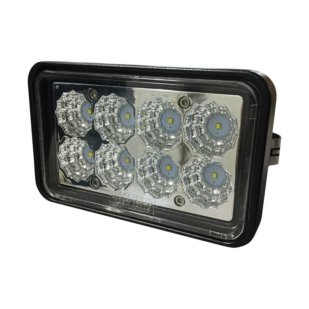Tigerlights LED Skid Steer Headlight with Clip produces 2000 lumens with a power draw of 24.0 watts and 2.0 amps Designed for 12-24V systems. Beam pattern: Flood. Tech Specs: Direct replacement; Fits into two front lights above cab and rear