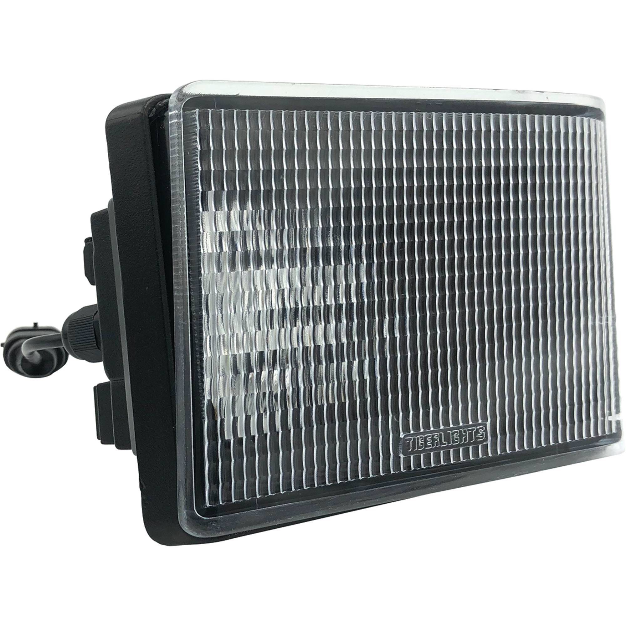 Tigerlights LED Right Corner Lights produces 2100 lumens with a power draw of 30.0 watts and 2.5 amps Designed for 12-24V systems. Beam pattern: Flood. Tech Specs: For 7600-7810 tractors; High beam; Left side; Plug and Play; Uses