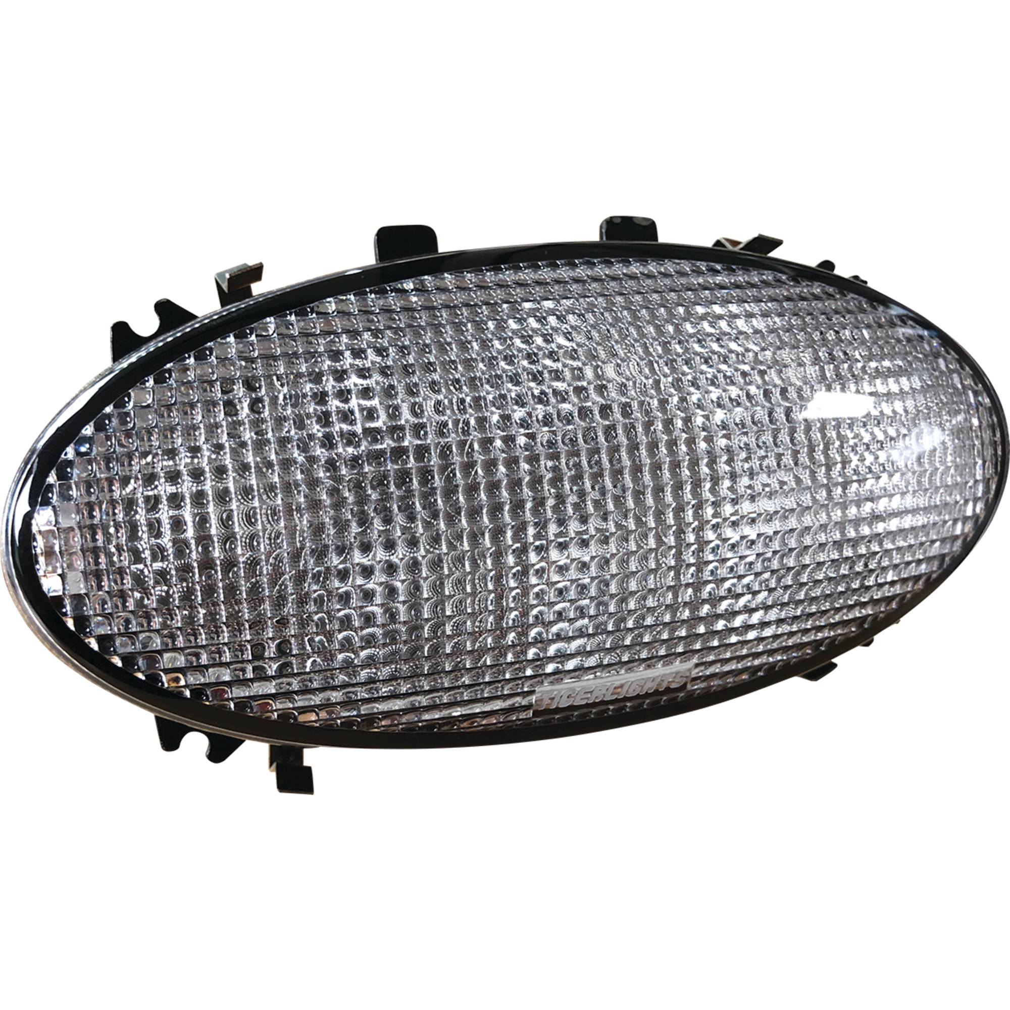 Tigerlights LED Oval Flush Mount Cab Light produces 3200 lumens with a power draw of 40.0 watts and 3.3 amps Designed for 12-24V systems. Beam pattern: Spot/Flood. Includes: Upper Front & Rear Cab Tech Specs: Aluminum housing, durable poly-carbonate lens; Direct