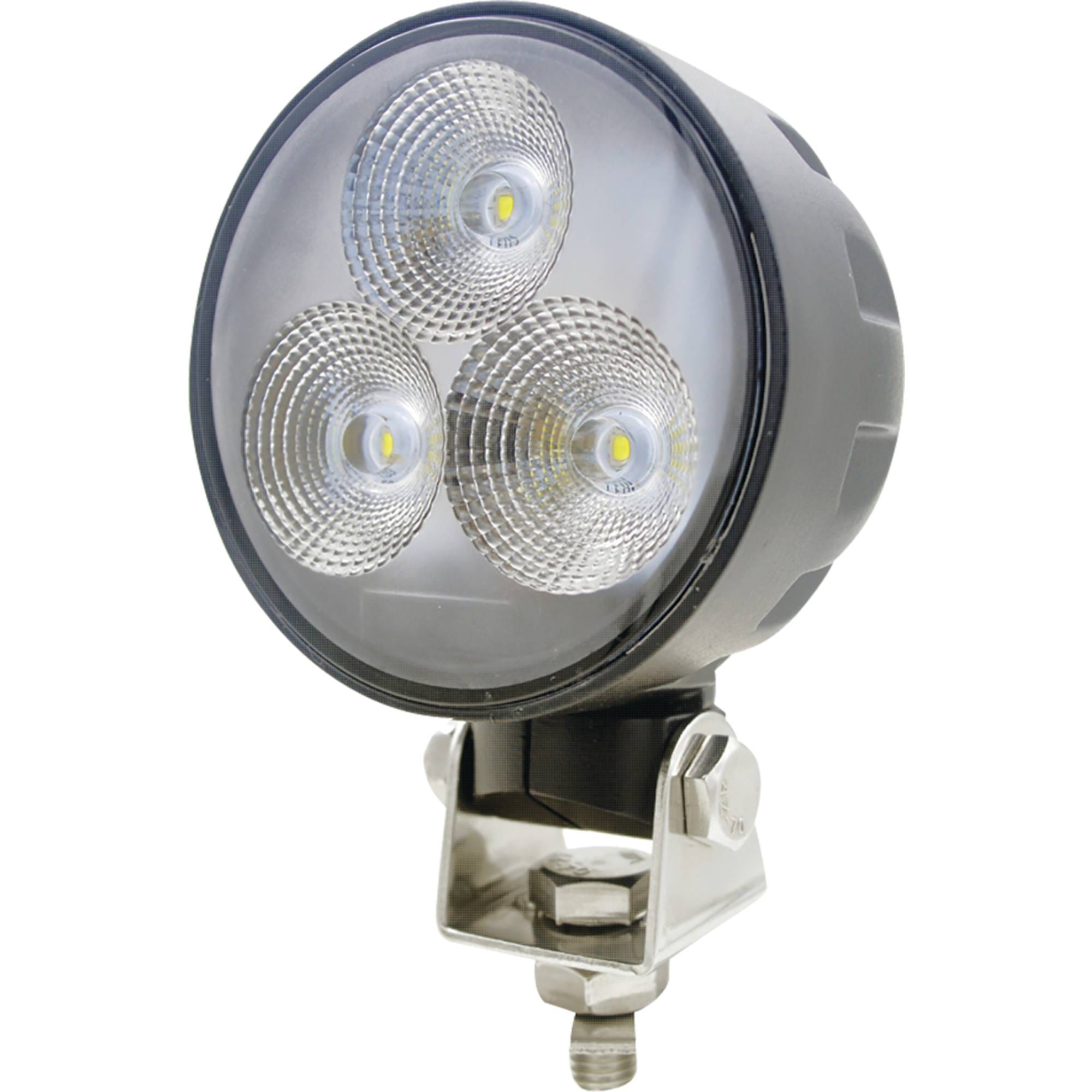Tigerlights LED Headlight with Swivel Mount produces 2200 lumens with a power draw of 30.0 watts and 2.5 amps Designed for 12-24V systems. Beam pattern: Flood. Tech Specs: Direct replacement; Plug and Play Fits John Deere models: 8100, 8200, 8300, 8400, 8500, 8600, 8800