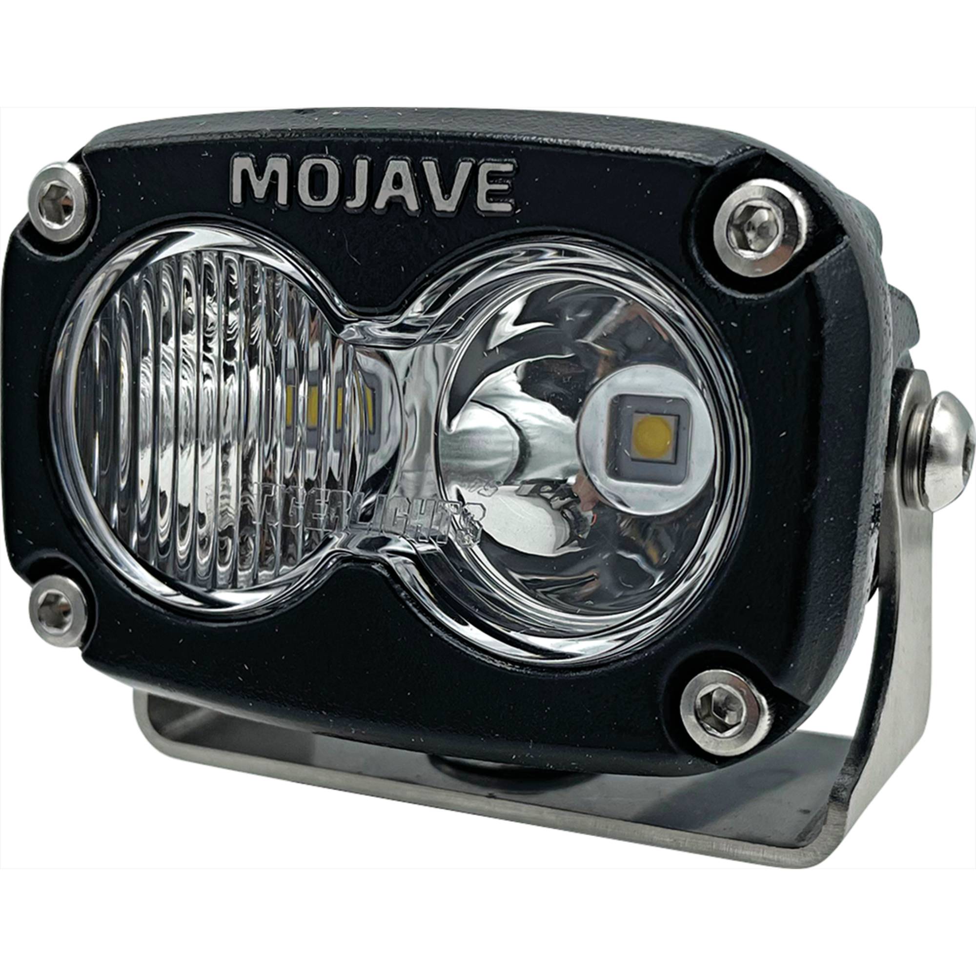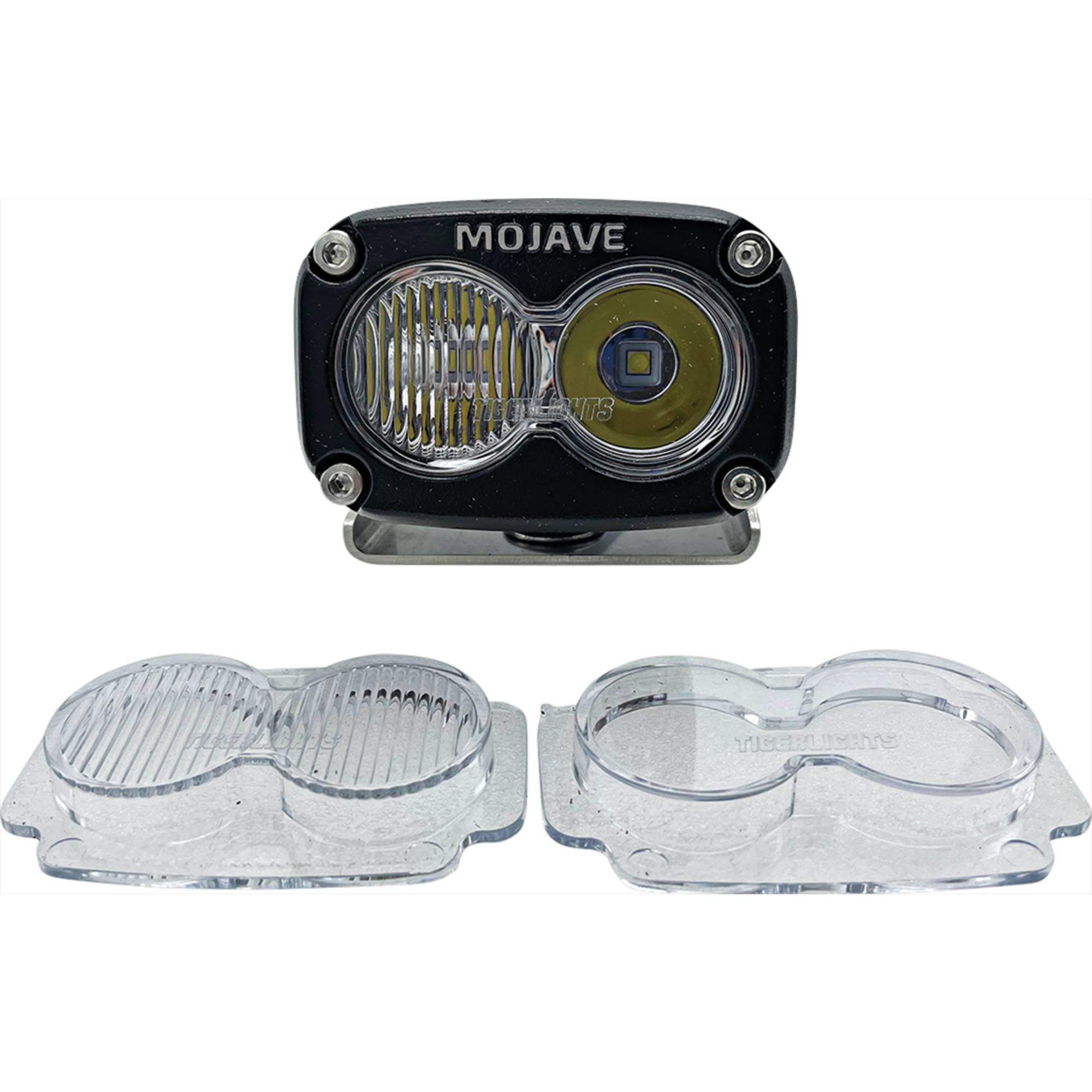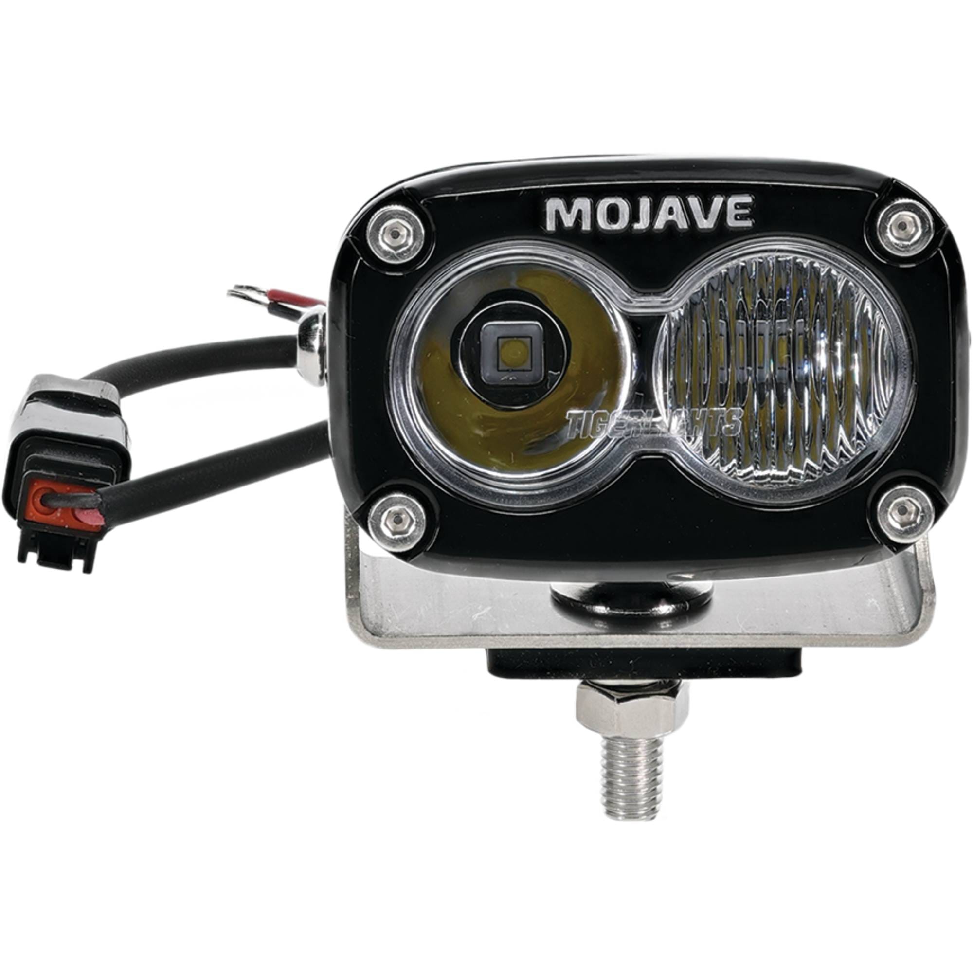 Tigerlights LED 2″ x 3″ Mojave Series Light produces 2000 lumens with a power draw of 20.0 watts and 1.8 amps Designed for 12-24V systems. Beam pattern: Spot/Flood. Includes: Flood lens, spot lens, combo lens, stainless steel hardware,