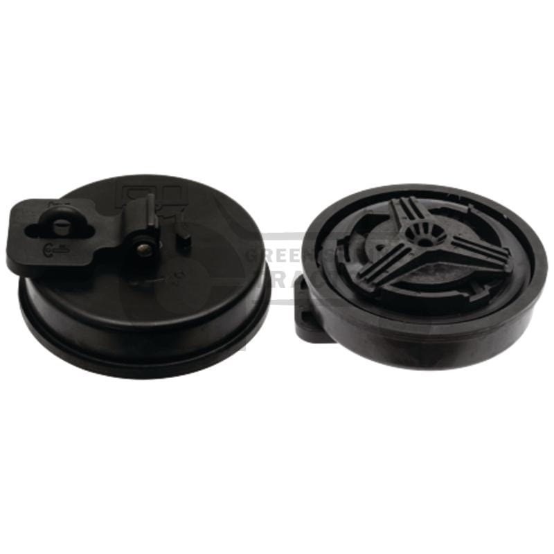 Tank cap compatible with John Deere models 540, 550, 560, 650, 660, 670, 690, 7630, 7720, 7730, 7820, 7830, 7920, 7930, 8100, 8120, 8120T, 8130, 8200, 8220, 8220T, 8225R, 8230, 8230T, 8245R, 8270R, 8295R, 8320, 8320R, 8320T, 8330, 8330T, 8345R, 8400, 8420, 8420T, 8430, 8430T, 8500, 8520, 8520T, 8530, 8600, 9120, 9220, 9230, 9320, 9320T, 9330, 9420, 9420T, 9430, 9430T, 9520, 9520T, 9530, 9530T, 9620, 9620T, 9630, 9630T, 9640, 9660, 9670, 9680, 9770, 9780, 9870, 9880. Replaces part numbers: AH165080, RE234193, RE255763. Ensure your equipment runs smoothly with this tank cap.